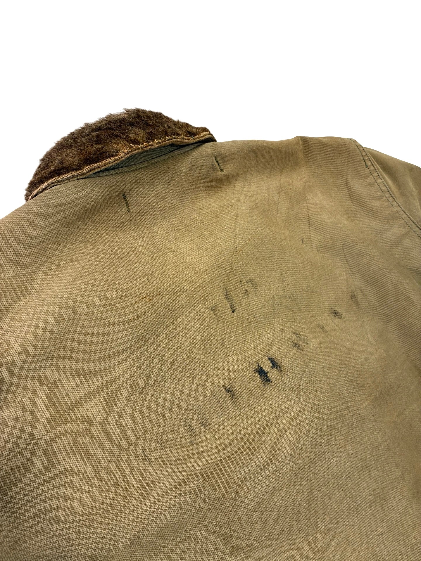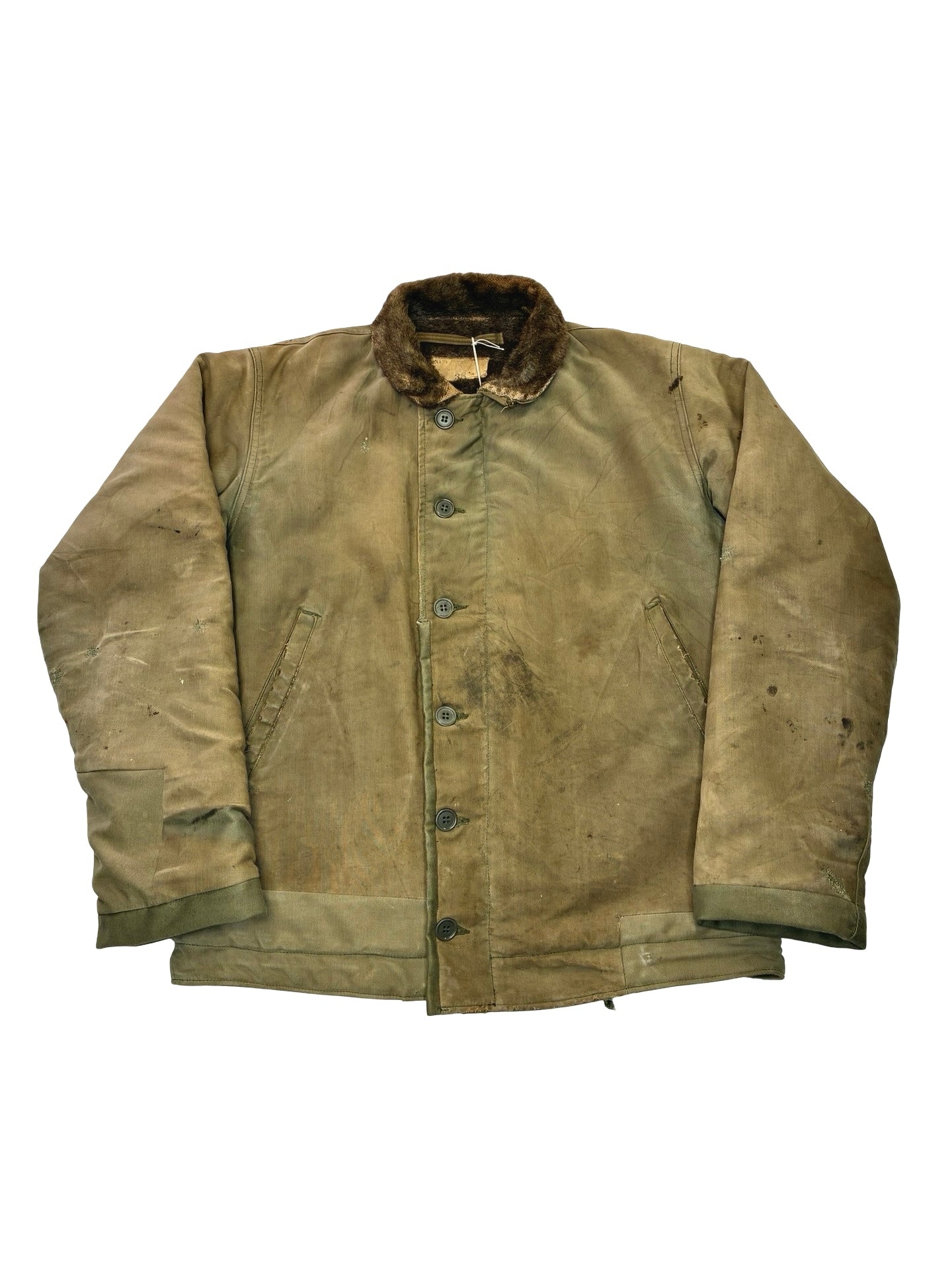 Classic and unrivalled Us Navy N1 deck jacket! This great jacket had been worn in to perfection with a great colour and ‘been there’ look. We have since repaired it Ready for a new life! Undisputed best jackets out there and this one showing great character! Great original stencil on the back!