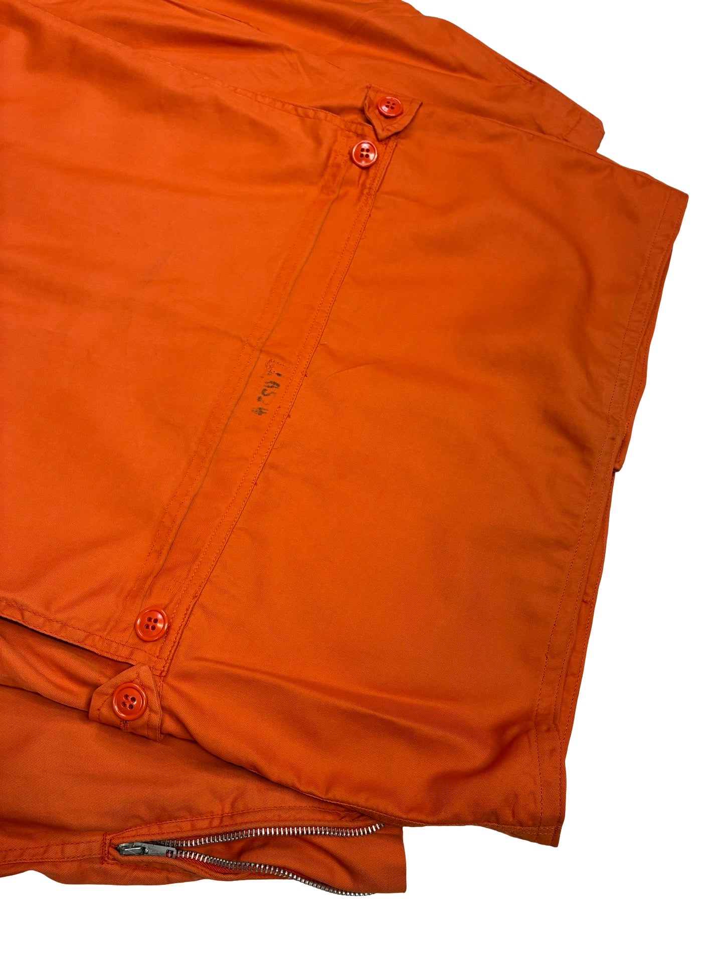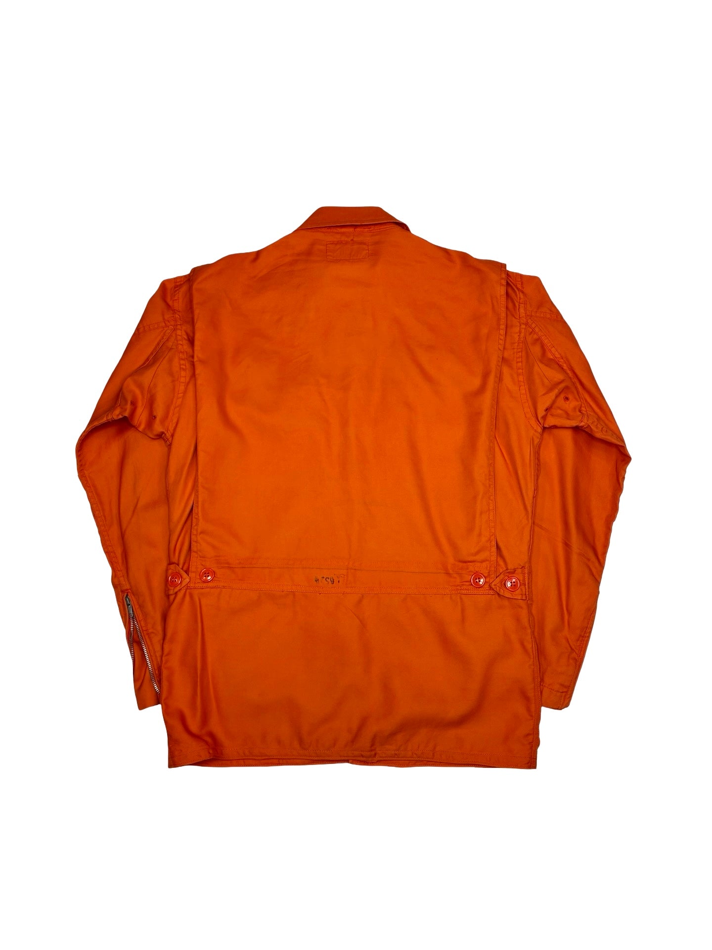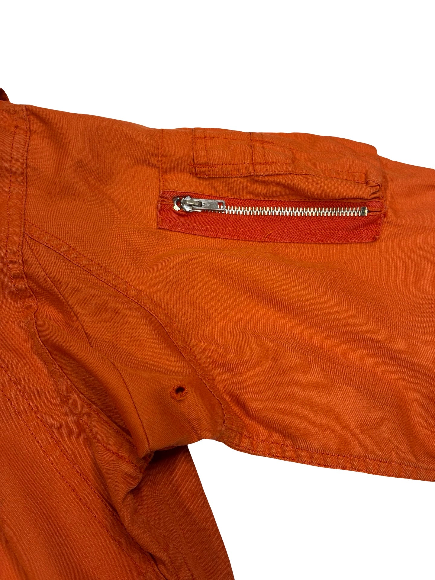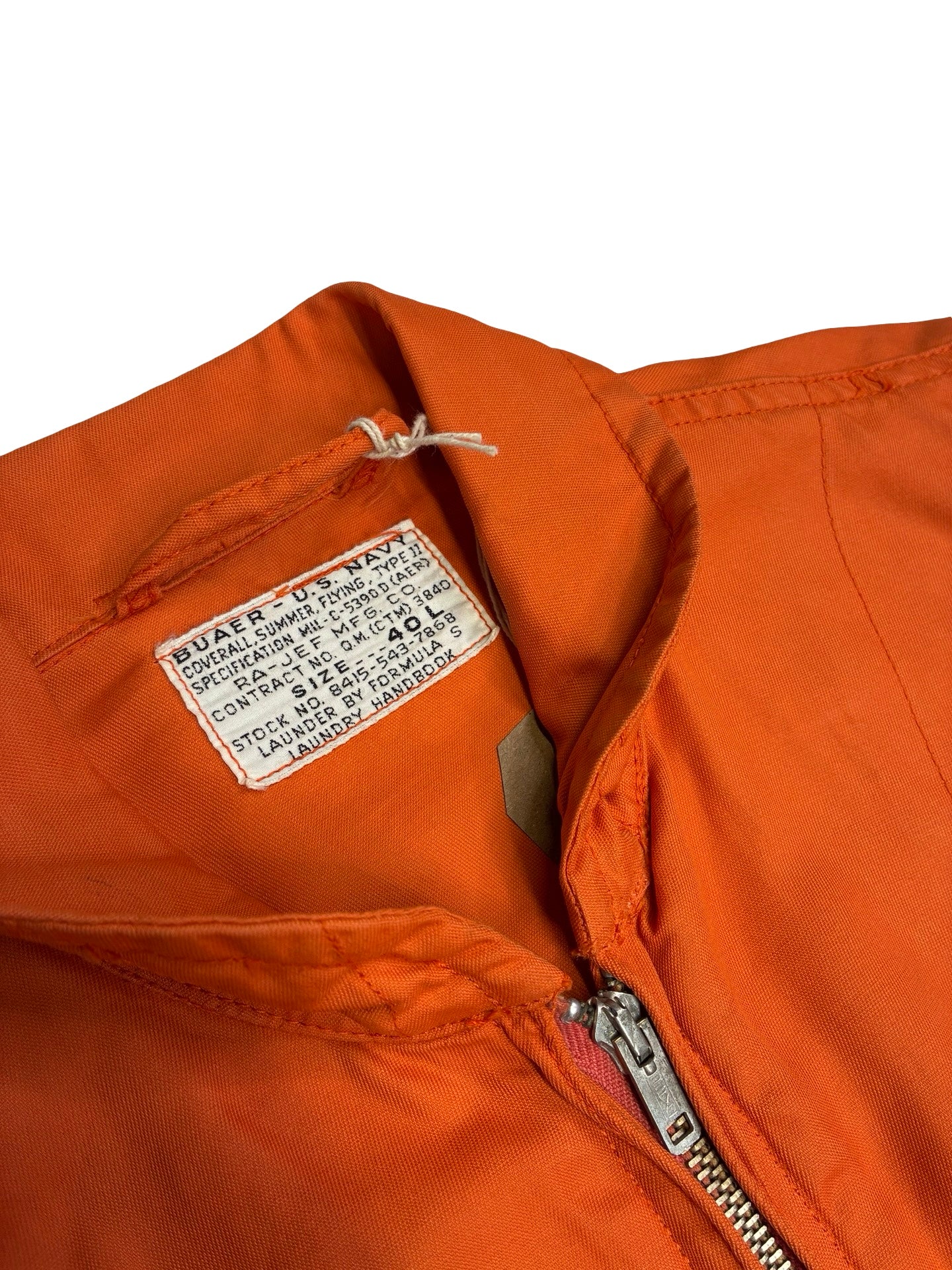 A one off US Navy flight jacket that we have made from an original flight suit. We converted this example from a suit which had damaged legs and used the pockets so it’s like the test pilots / early summer flight jackets patterns. It’s a complete one off and you’ll be the only one with one!