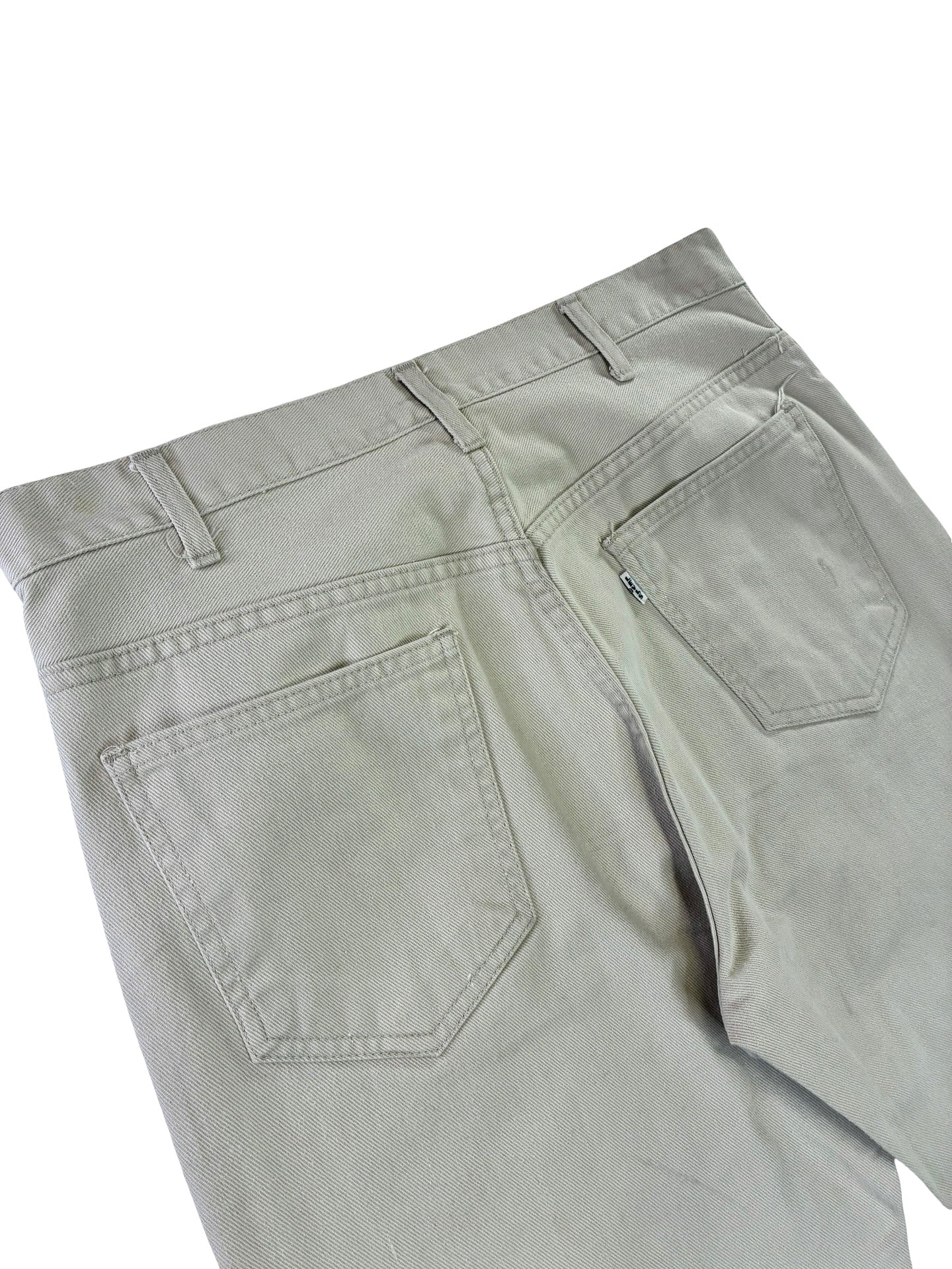 A great pair of Levi Strauss cotton twill trousers. Classic style, these are the 800B in an attractive off white colour. Great cut, they still have the nice Big E label to the back pocket. This came in as a matched set with the jacket which is also available on the site!