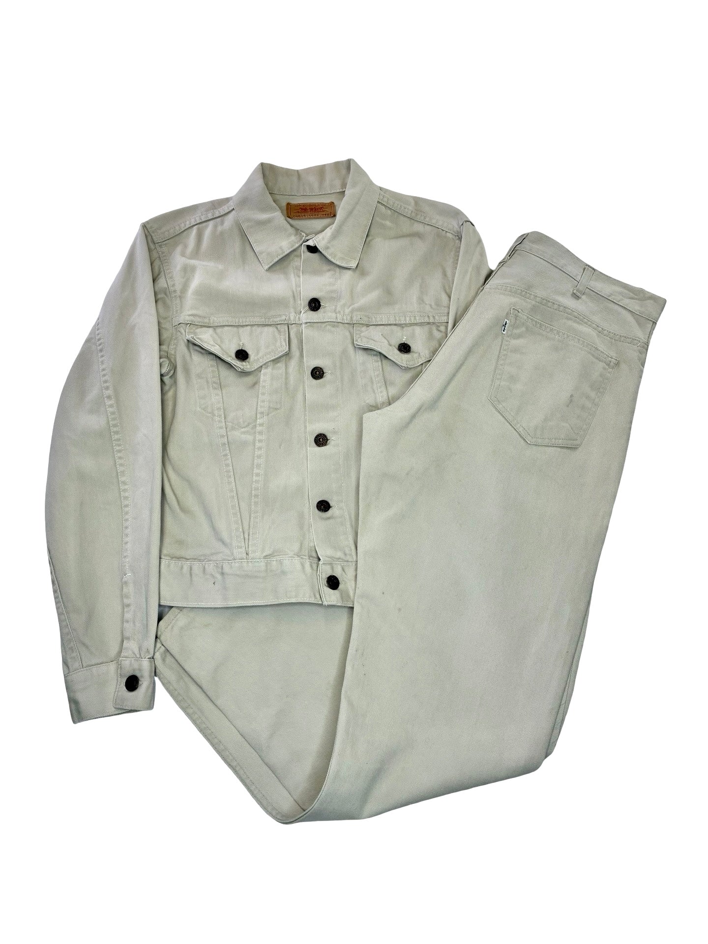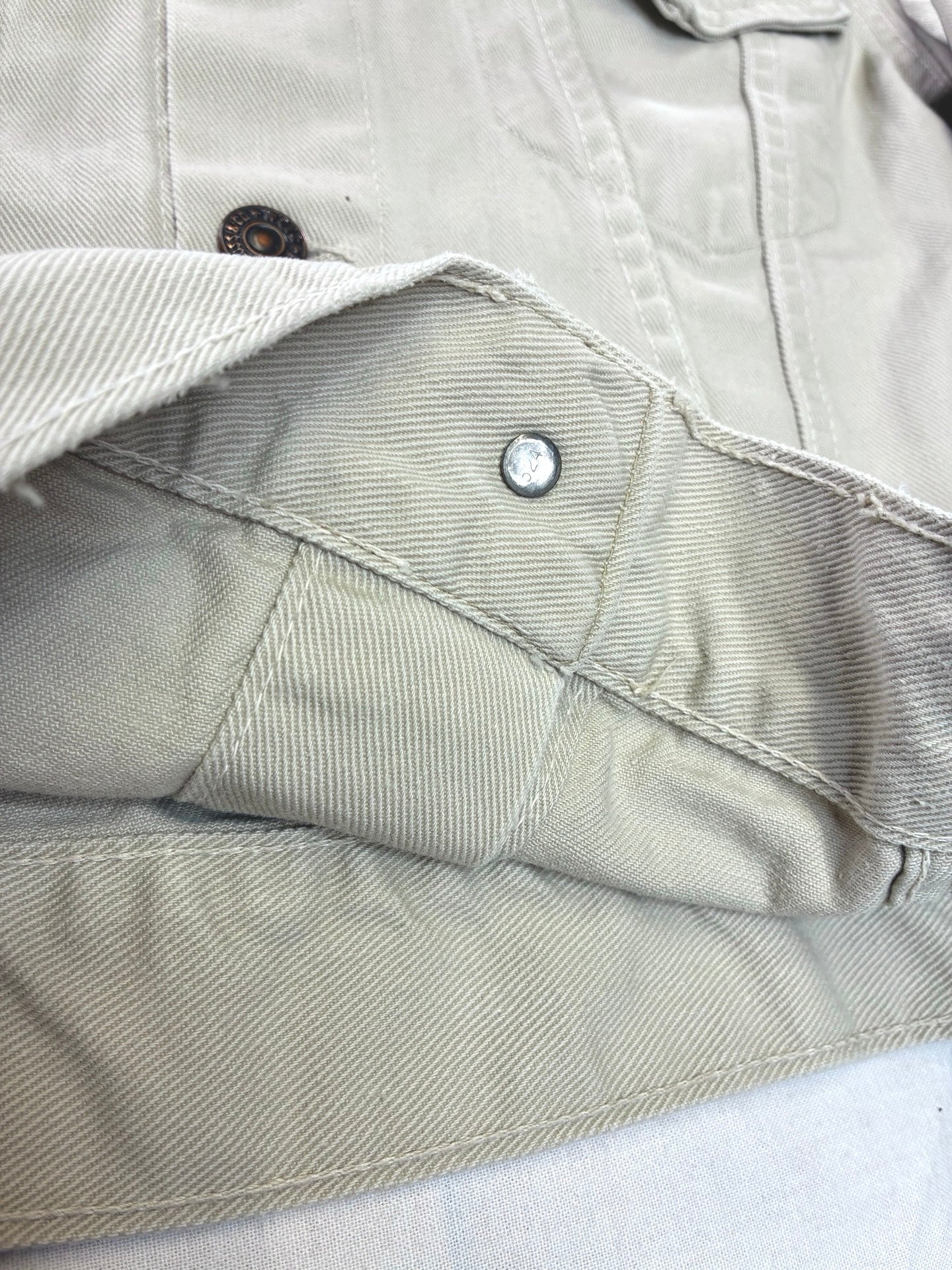 A great Levi Strauss cotton twill trucker jacket. Classic type 3 style, this is the rare 70518-1022 style 840B, really great looking jacket in an attractive off white colour. This came in as a matched set with the trousers which are also available on the site!