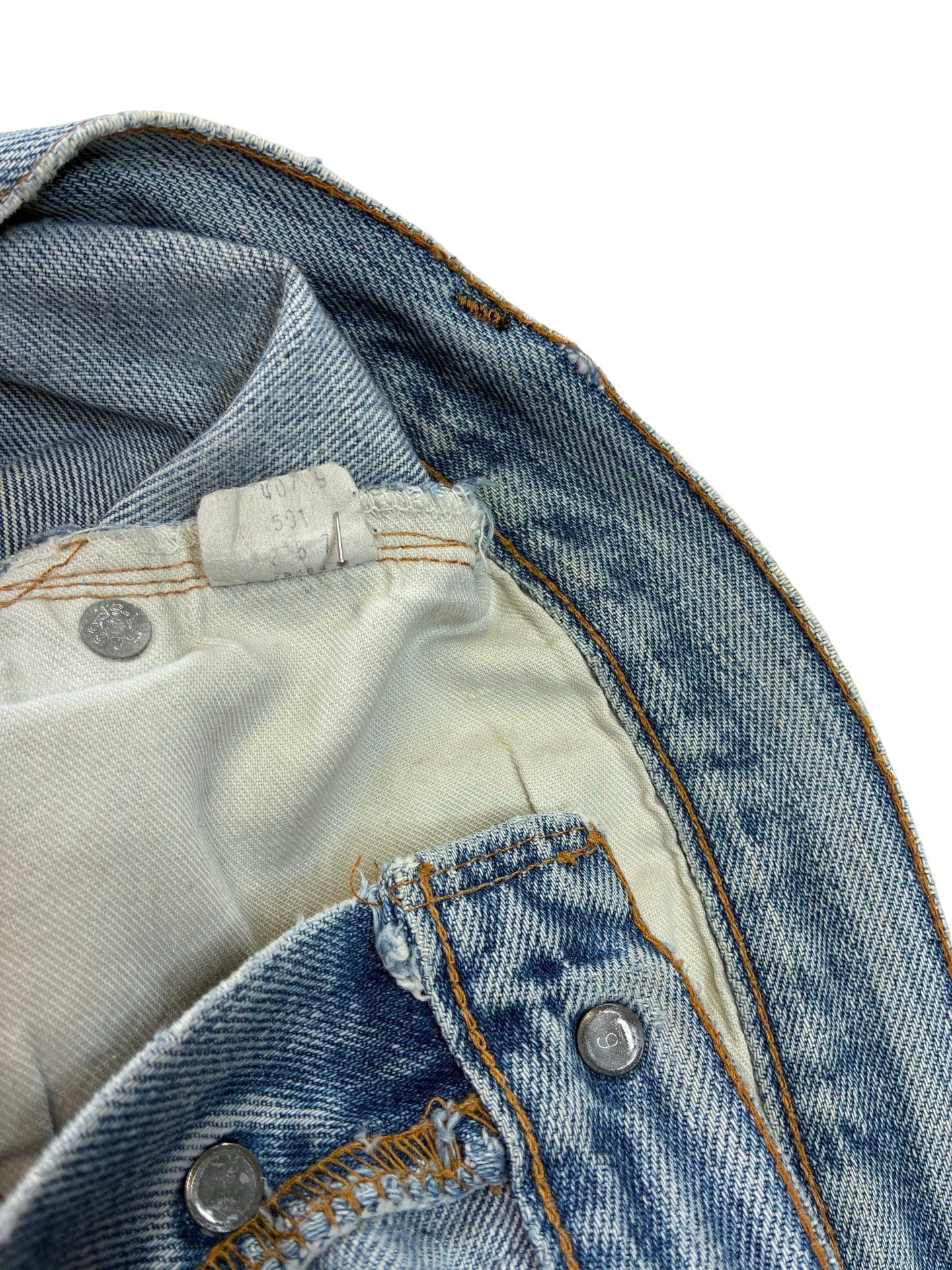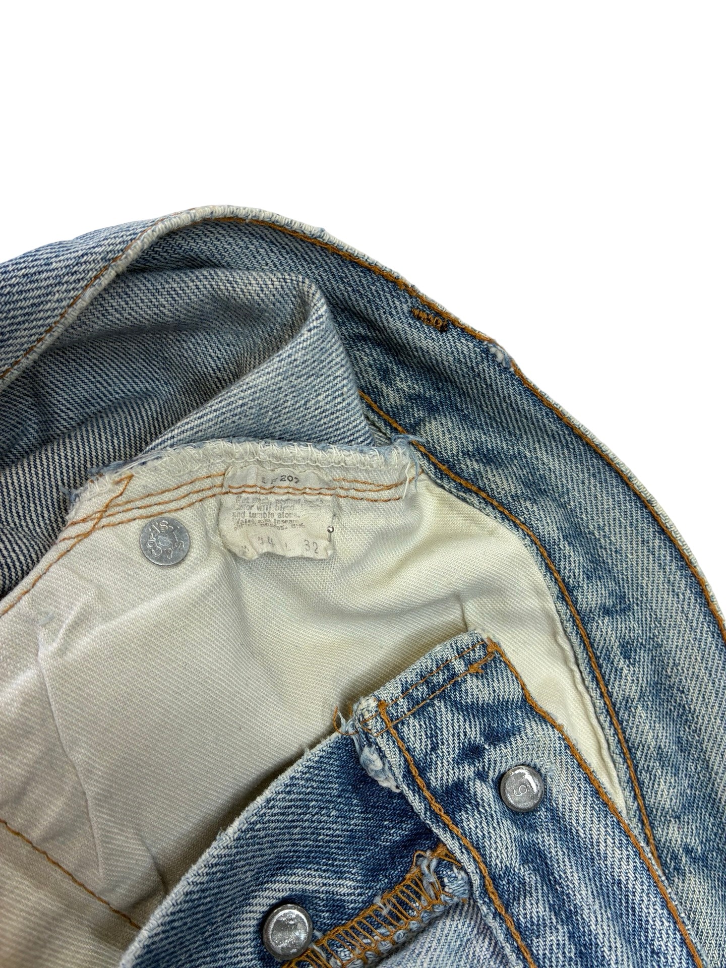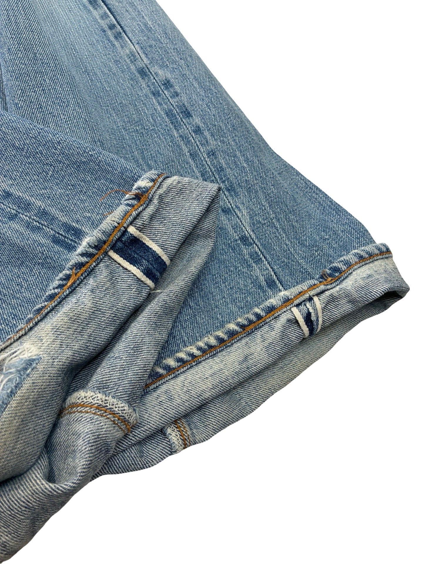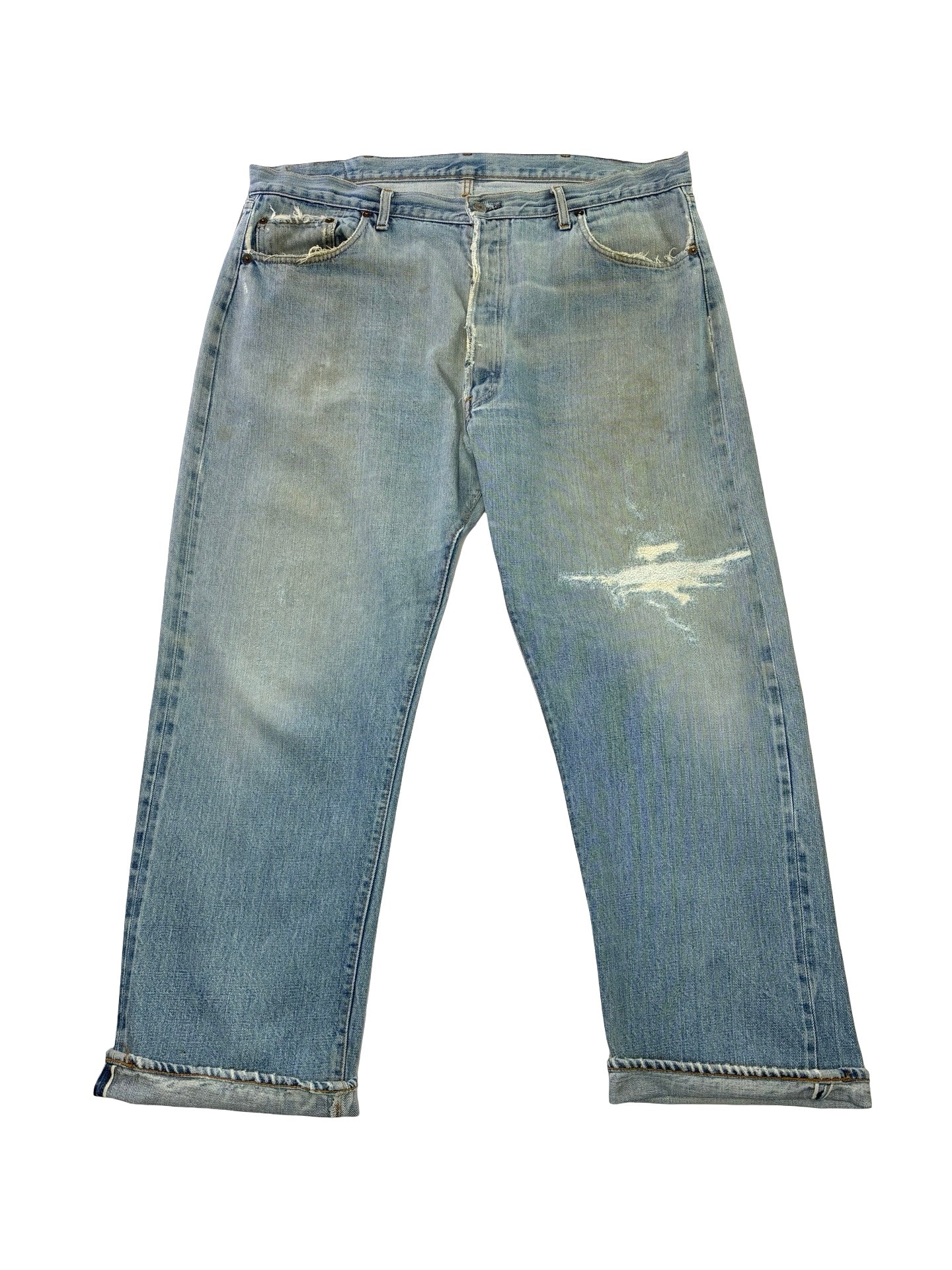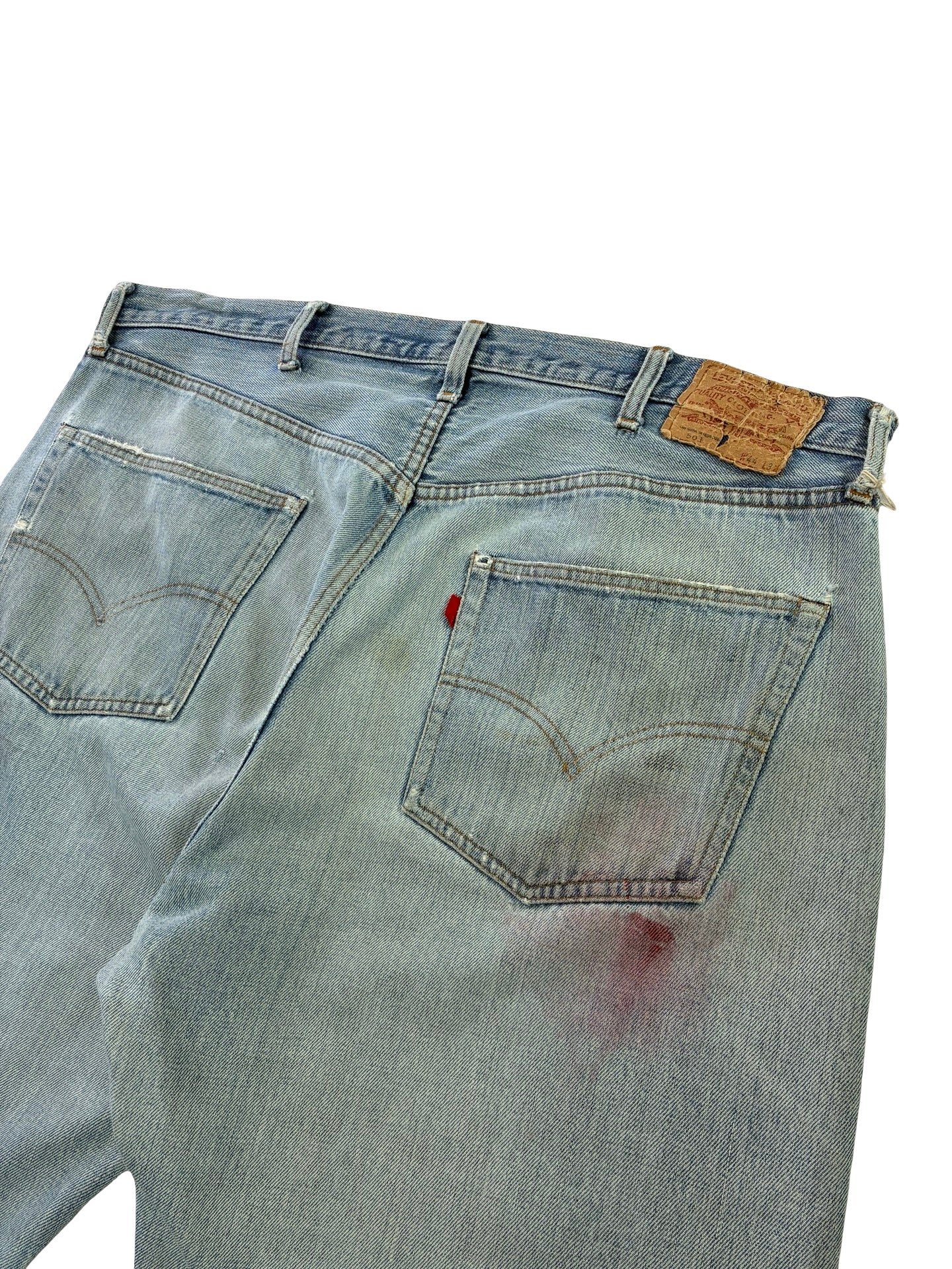 some marks and fades as expected. Been repaired to the leg, crotch and button holes! Frays to hems.