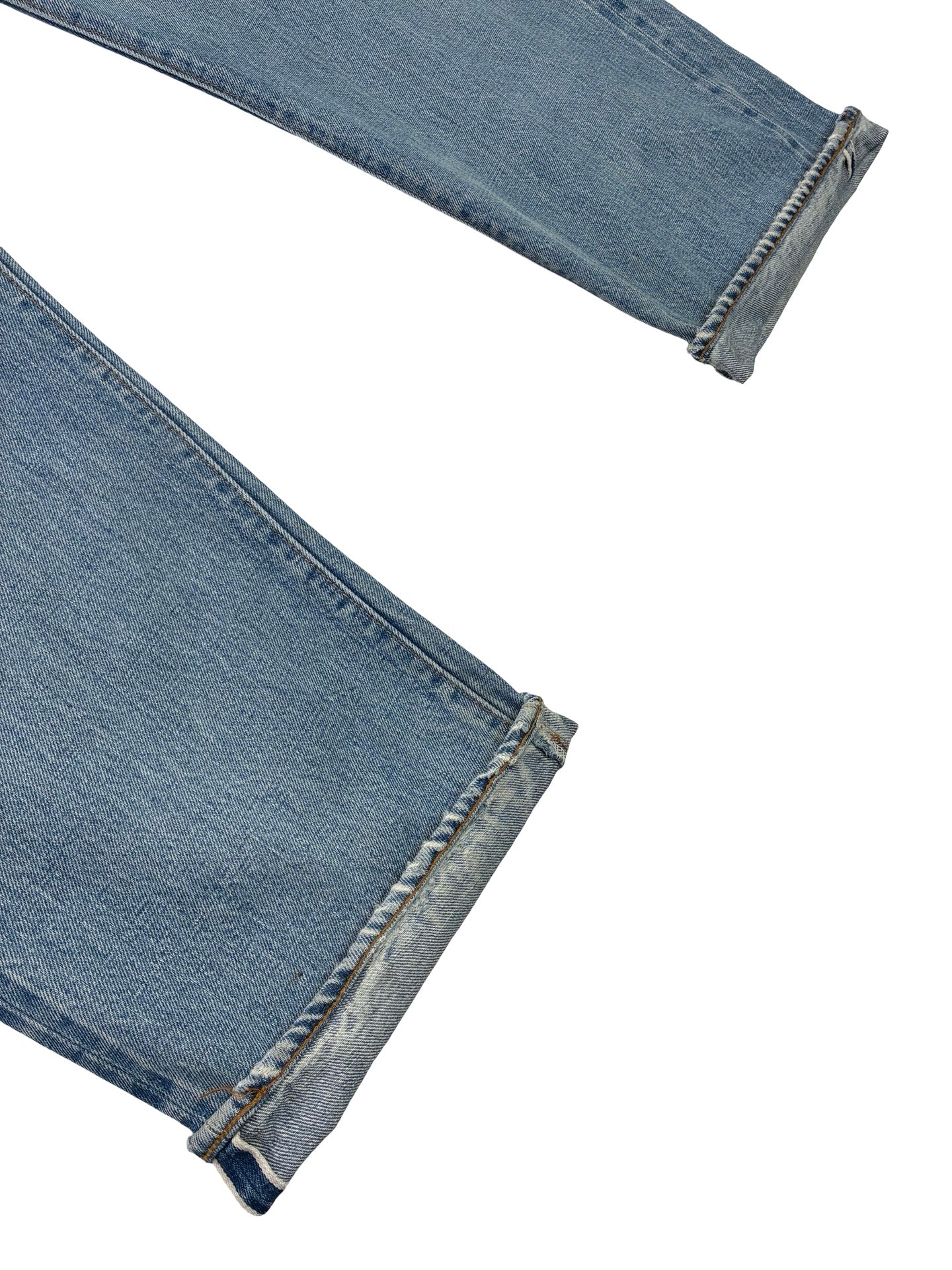 The classic 501 Jean from Levi, this pair is made in USA and dates to later 70s / early 80s. Considered one the best cut of Jean ever. This pair has been well worn in with some great wear pattern and repairs, it has the desirable leg twist older pairs got and the classic redline selvedge outseam.