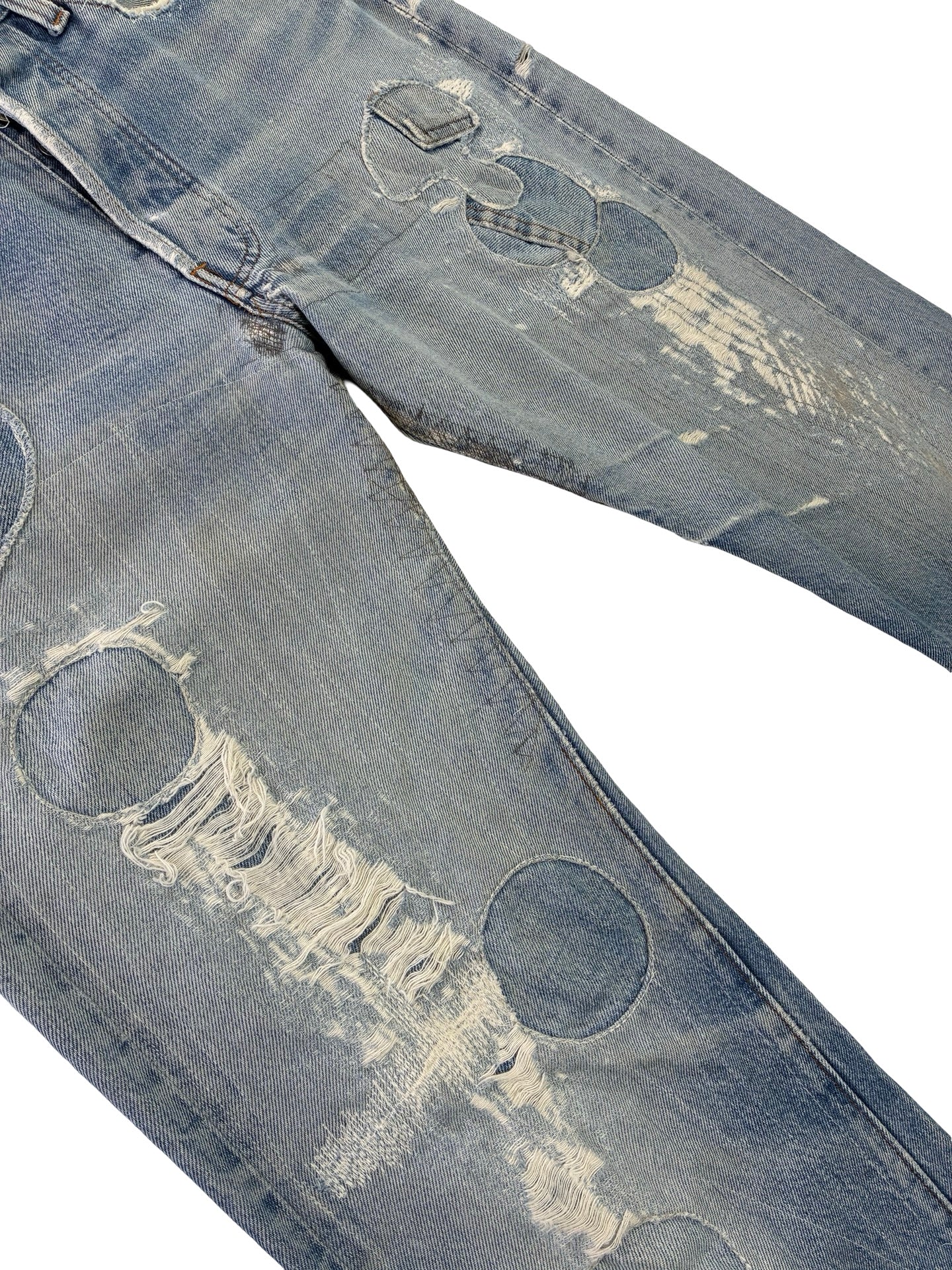 The classic 501 Jean from Levi, this pair is made in USA and dates to later 70s / early 80s. Considered one the best cut of Jean ever. This pair has been well worn in with some great wear pattern and original repairs, it has the desirable leg twist older pairs got and the classic redline selvedge outseam.